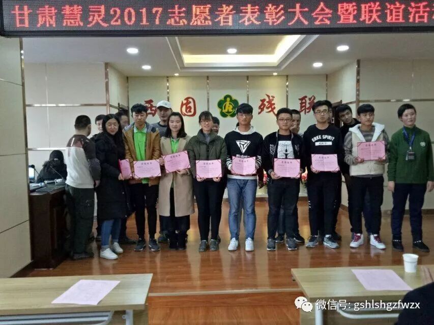 2017年12月15日,甘肃慧灵社会工作服务中心携手十九所高校社团举办了“爱,因你而精彩”志愿者表彰大会暨联谊活动。本次活动得到了兰州市西固区残疾人联合会的大力支持,给予我们深深的肯定与前行的力量。