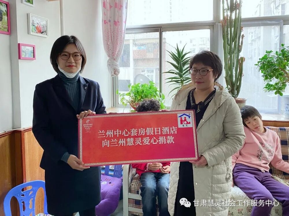 真情延续生命 爱心点燃希望 2020年12月10日下午,兰州中心套房假日酒店的胡经理跟酒店同事一起来慧灵“心巢之家”探望学员并爱心捐赠。 此次兰州中心套房假日酒店捐赠的爱心善款,全部来源于他们酒店自己组织的员工跳蚤市场义卖活动,在下图中我们可以看到跳蚤市场商品的多样化。 在学员们热情的欢迎下,酒店的工作人员走进心巢家庭,首先由七里河小组负责老师讲解了社区化服务理念,介绍家庭成员和日常活动,随后由兰州中心套房假日酒店胡经理讲话,祝福我们的学员开心,健康。并表示以后会长期关注智障人士,给予力所能及的帮助。 为表示感谢这些善良的哥哥姐姐,学员们也带来了才艺表演,演唱曲目“尽忠报国”“你好兰州”“朋友”还一起互动拍拍操,随后学员带着大家参观了住宿环境。 活动最后兰州慧灵总干事徐小妹女士感激的说:“感谢酒店3年来的陪伴和支持,就是因为世界上有你们这些爱心人士的关注和关心,给予我们支持和帮助,非常感谢你们,”为表达感谢之意特送上一面锦旗和心智障碍学员绘画作品一幅,并合照留影。 点击上方蓝字关注我们 扫码关注我们 微信号:GSHL2008