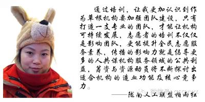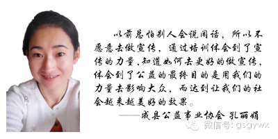 虎孝君老师从NGO为何要做传播阐述了传播工作对公益而言有着举足轻重的作用,然后从传播原则、传播渠道、品牌树立、信息发布、日常维护、案例分享6个方面做了详细讲解。分享过程中伙伴们进行了实操练习,整个下午,大家在轻松活泼的气氛中体验了传播的乐趣。