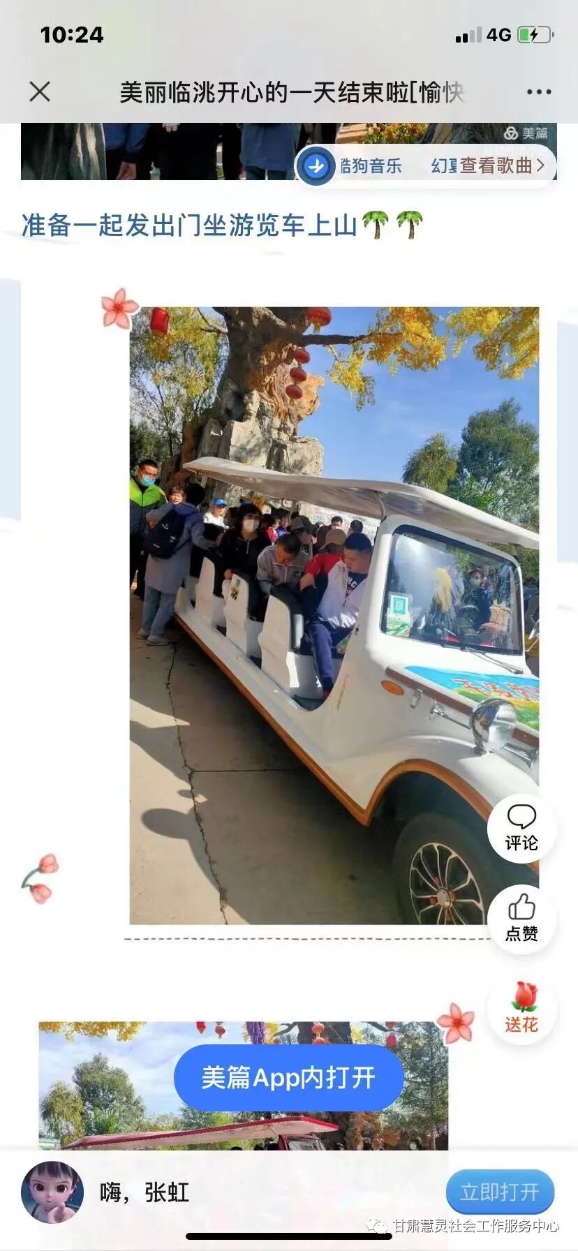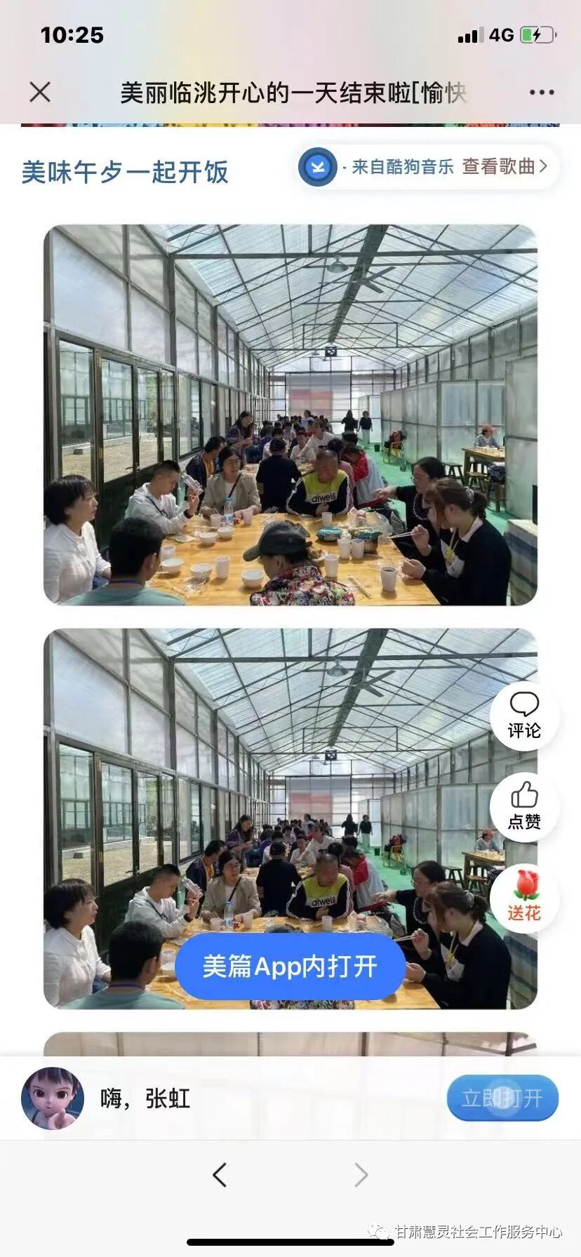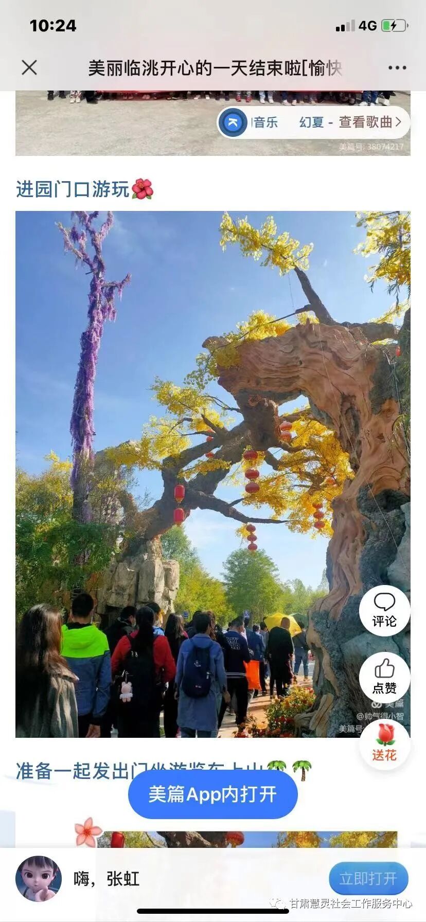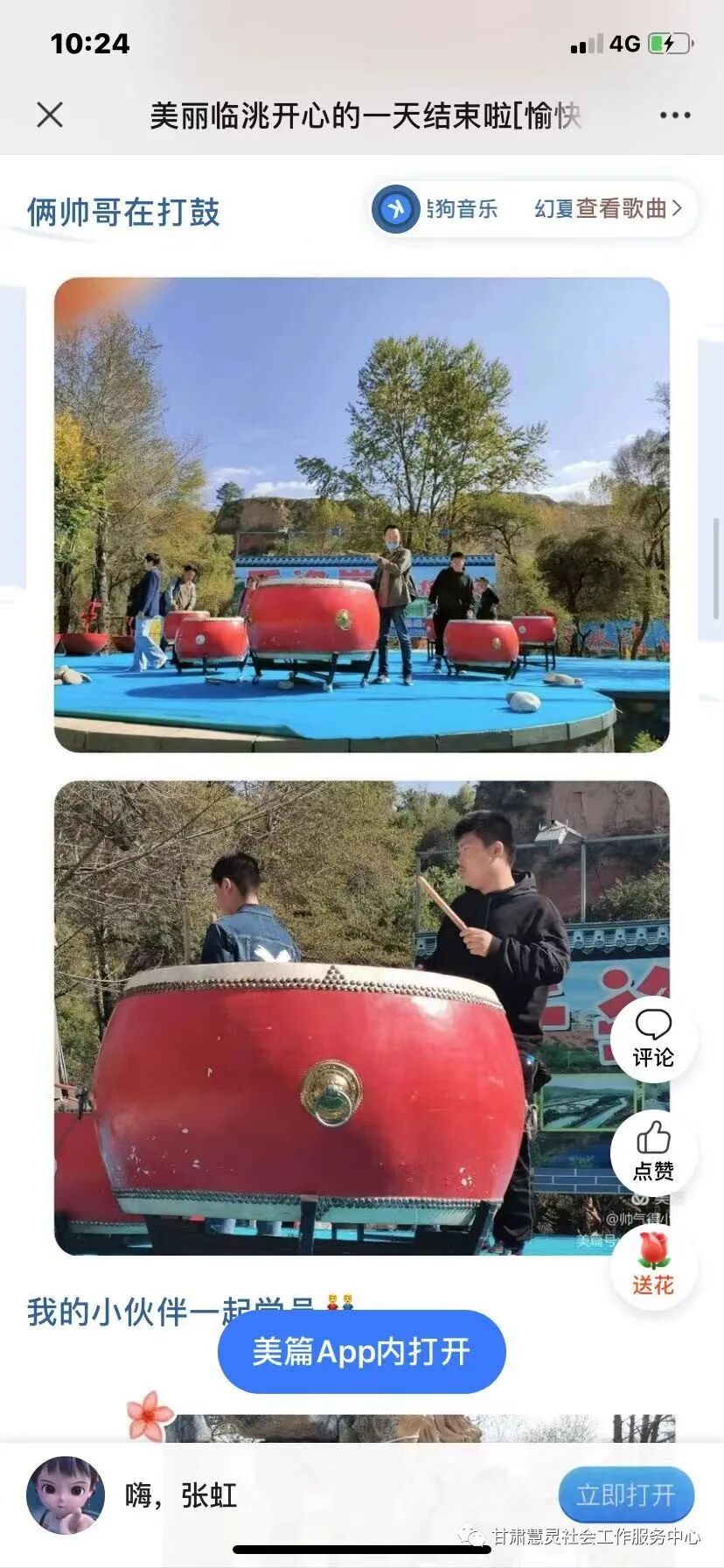 在此小编想分享一位学员“小智”自己制作的美篇,居然动作比小编还快,虽然简单但整体内容有调理、有顺序富有感情。真正表达了心智障碍人士对社会融合活动的需求和活动带来的满足和快乐,这也是甘肃慧灵开展融合活动的目的。 点击 上方文字 关注我们 更多精彩内容 扫码关注我们