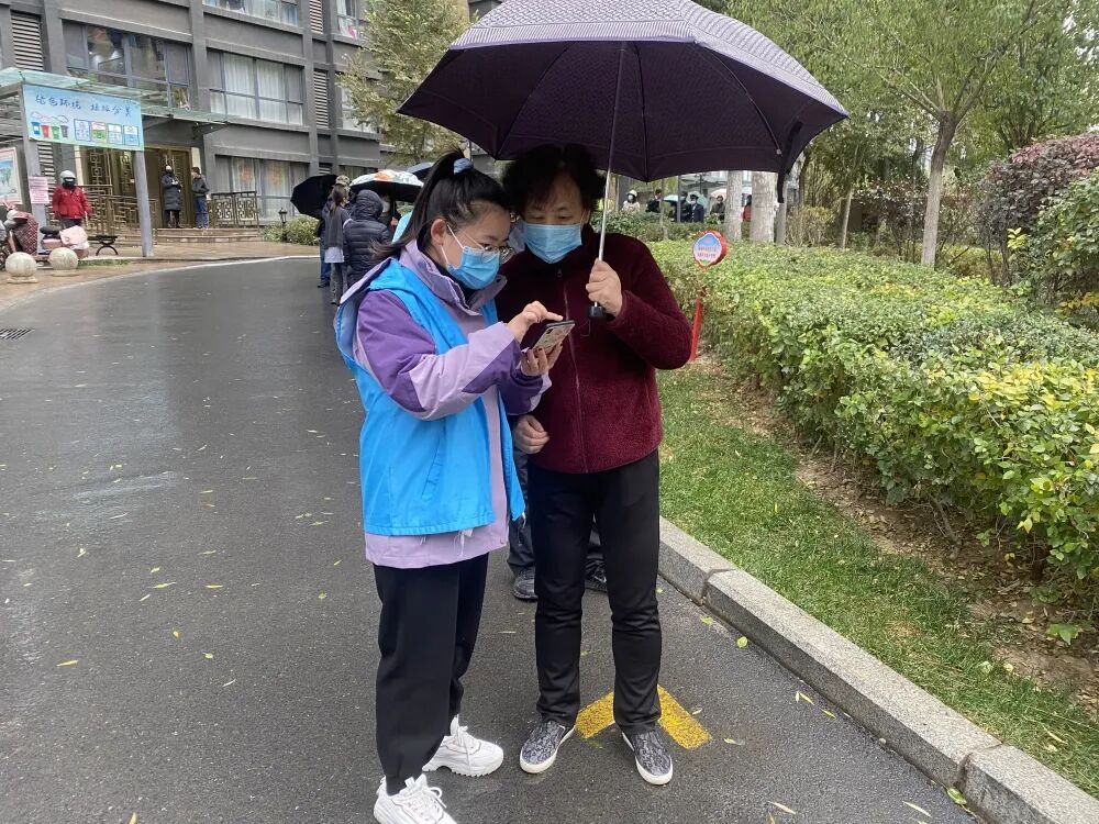 “请大家佩戴好口罩,打开健康码,做完核酸检测后不要逗留,谢谢配合!”在靖远路街道朝阳村社区,居民在等待进行核酸检测,驻点社工们秉着残疾人、老年人优先的原则,维护着现场核酸检测排队秩序,温馨提示大家需要注意的事项,并提醒大家佩戴好口罩保持“一米”距离。针对许多高龄老人不会用智能手机查询健康码的情况,社工们第一时间帮助老人们答疑解惑,协助大家填写信息,保障核酸采样工作高效有序推进。