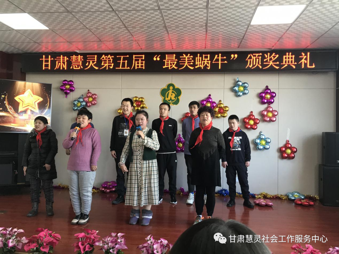 3月4日,我们迎来了甘肃慧灵第五届“最美蜗牛”颁奖典礼。应疫情防控上级要求,本次活动采取线上+线下的方式开展,并且在活动过程中严格落实疫情防控工作。 本次活动在员工的开场舞《幸福一家人》中拉开序幕。正如歌词所唱“因为我们是一家人,相依相信,彼此都感恩。”慧灵作为一个充满爱的大家庭,让员工对机构充满了归属感。接下来,心青年们为大家表演了精彩的节目,充分展示了自信与风采。虽然他们不善表达,但他们会用肢体语言向大家展示自己,通过这次的才艺展示不仅仅让大众更了解他们,更让蜗们在今后的生活中更加自信、自强。 驻足回望2021年,每天都浸透着奋斗的汗水,积淀了时间的重量。在过去的一年中,涌现出了一批优秀的蜗友,他们风雨无阻的来机构,积极参与各种活动,很好的完成例行工作,并且热情满满的帮助伙伴,用自己的爱心和热心感染着身边的人。慧灵理事长支海云和总干事徐小妹为师楠等5为位优秀蜗友颁奖,希望通过本次活动给他们的进步和努力给与肯定,让他们在新的一年充满信心,带动身边的伙伴,一起成为更好的自己。 慧灵的成长发展离不开家长、志愿者、爱心企业的大力支持。在过去的一年中,家长们默默支持并全面配合机构的工作,为慧灵链接资源,献策献力;志愿者们默默付出,不求回报,给心青年们带来了温暖与力量;爱心单位积极履行社会责任,关注弱势群体,用自己的爱心帮助心青年们更好的融入社会。很遗憾受疫情影响,这些爱心人士们没来到现场,但相信屏幕前观看直播的他们能欣赏到心青年精彩的表演和大家由衷的感激之情。 此外,本次活动还对优秀员工和疫情防控先锋进行了表彰,机构的前进和壮大,离不开每位员工的辛苦付出。而慧灵社工站的同事们更是在疫情来临之时迎难而上,坚守抗疫第一线。她们爱岗敬业、认真负责的态度值得我们学习,在本次活动中,为她们颁发奖状,加冕荣誉。 活动在大合唱《学习雷锋好榜样》的歌声中,第五届最美蜗牛活动圆满落幕,接下来的生活中,慧灵会再接再厉,昂首前行,奔赴下一段旅程,迎接下一季花开。