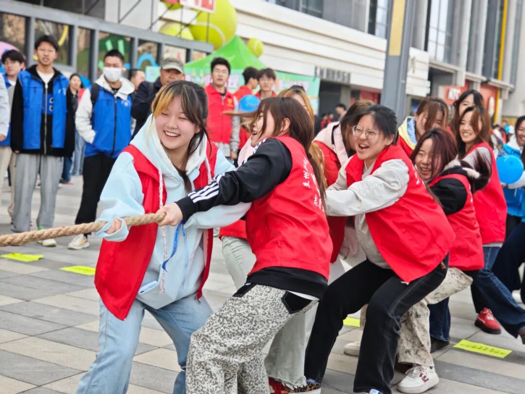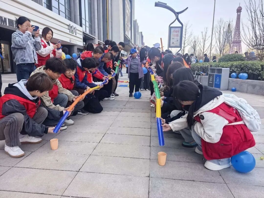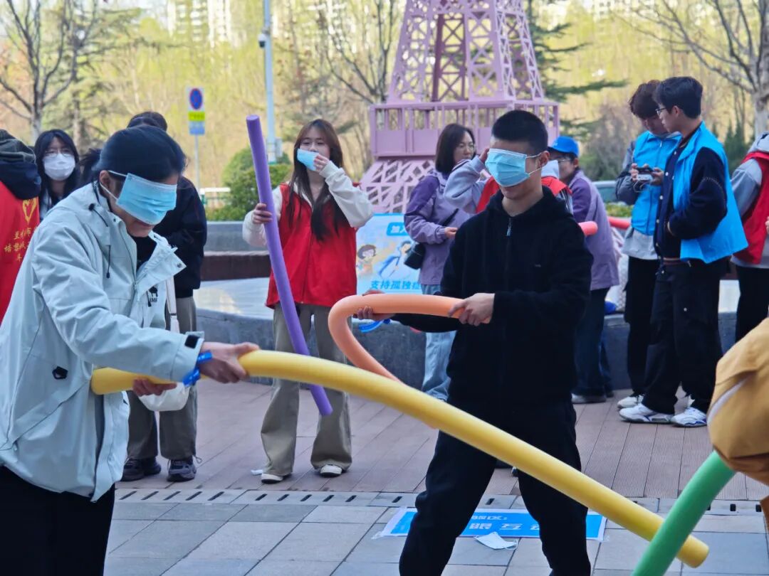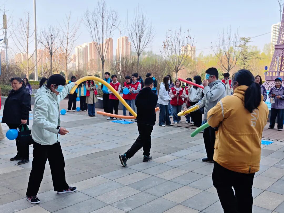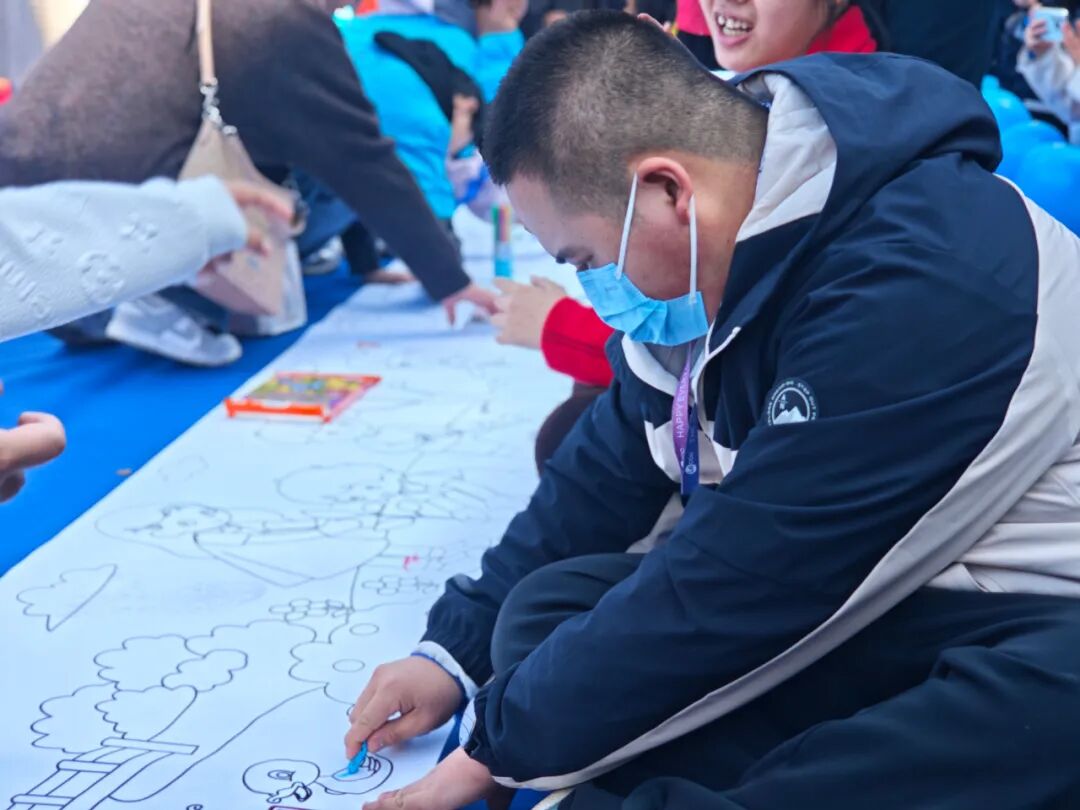 舞台区同步开展《跳动的彩虹伞》《长轴作画》、拔河等融合活动,孩子们与志愿者、市民共同创作、互动游戏,用行动诠释“接纳从体验开始,融合从陪伴出发”的理念。