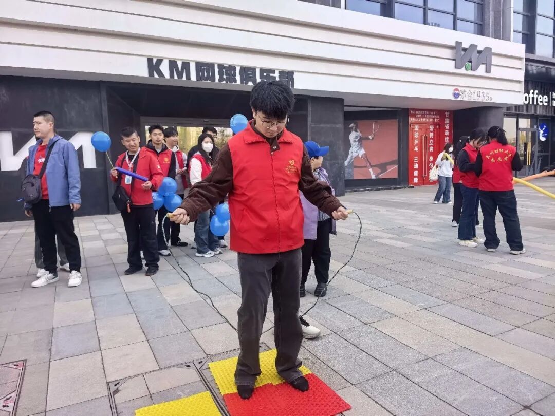指压板跳绳:在趣味运动中锻炼协调能力,让参与者感受协作的快乐,体会孤独症孩子在运动中建立自信的过程。
